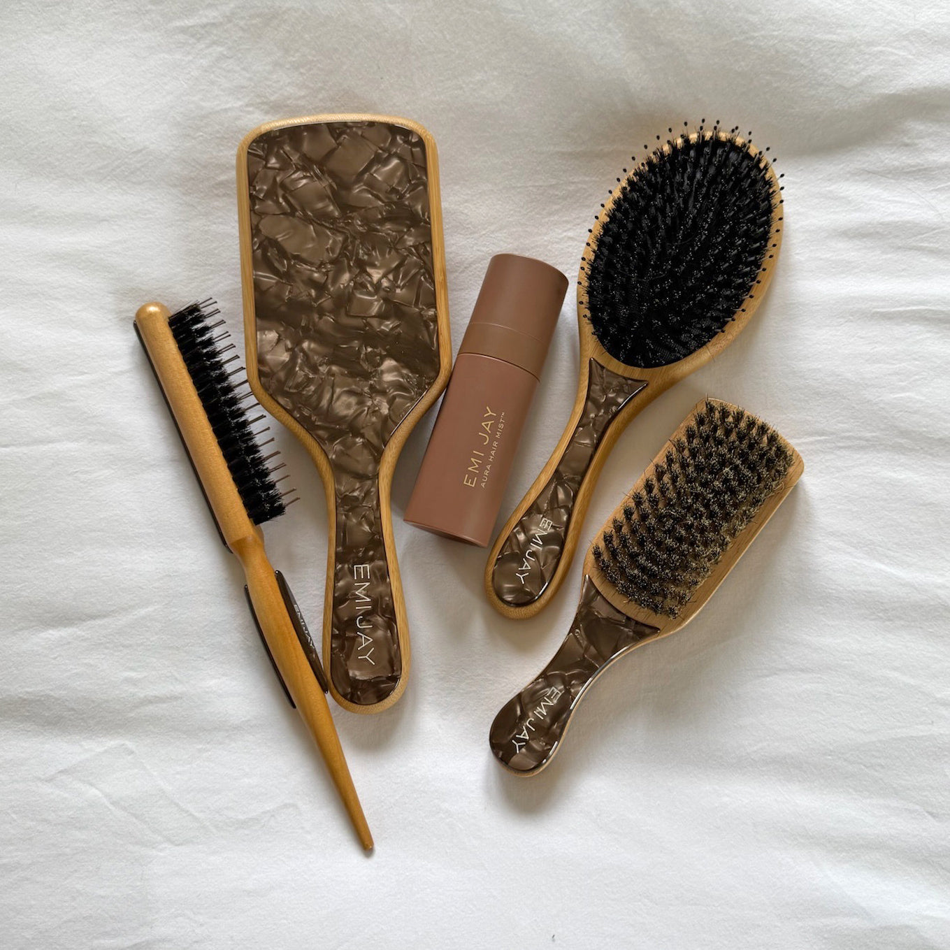 Meet our Flat Brush, where dual bristles work together to create a styling masterpiece. This brush is crafted with precision and features a harmonious blend of nylon bristles for effortless detangling, complemented by boar bristles that provide a glossy finish and help banish flyaways. It effortlessly adapts to the needs of any hair type, making it the ultimate everyday essential for those seeking a flawless and elevated hair care experience.